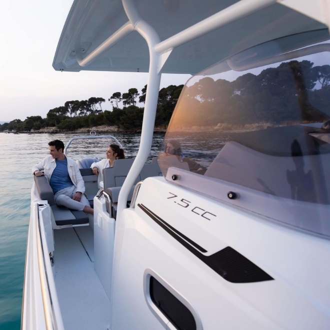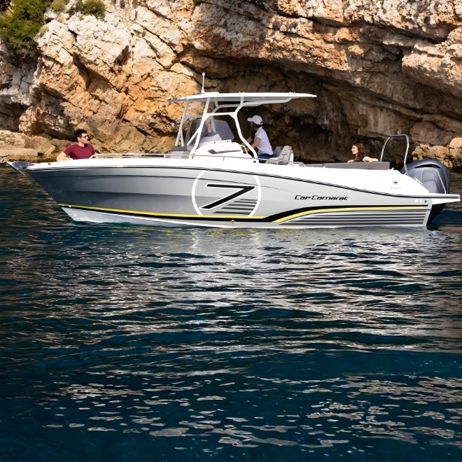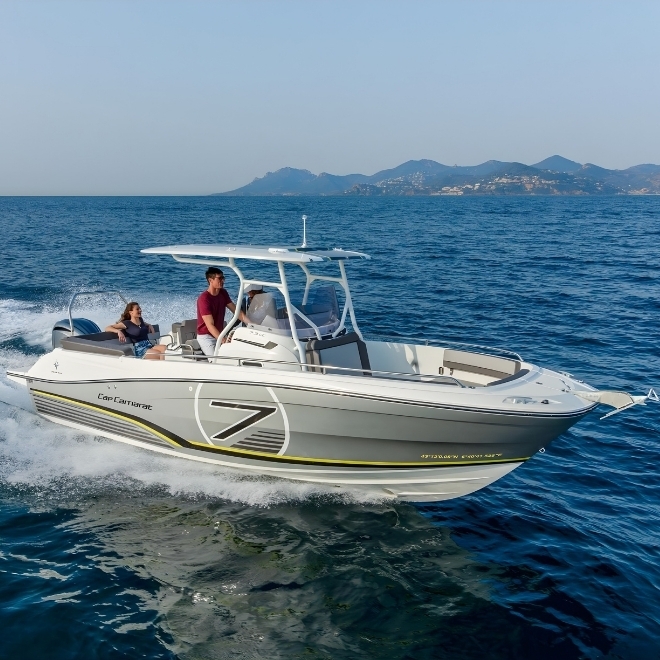 Echipată cu motor outboard puternic de pana la 300 CP, Cap Camarat 7.5 CC Serie 3 oferă accelerație rapidă, viteză maximă ridicată și eficiență optimizată a consumului. Este ideală pentru pasionații de pescuit, croaziere de coastă sau activități nautice sportive, fiind o alegere versatilă și fiabilă pentru cei care caută performanță și libertate pe apă.