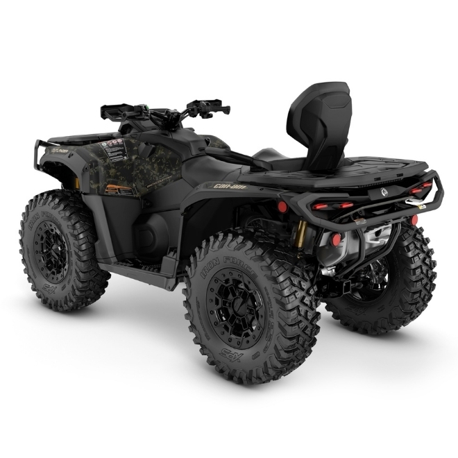 Can-Am Outlander MAX Backcountry 1000R 2026 este un ATV premium pentru 2 persoane, conceput pentru aventuri extreme și teren dificil. Echipat cu motor Rotax V-Twin de 999 cc și 101 CP, acest model oferă performanță impresionantă, tracțiune selectabilă 2WD/4WD și diferențial Visco-4Lok pentru control maxim în off-road. Suspensiile SHOWA pe gaz, anvelopele agresive de 30” și protecțiile complete ale șasiului asigură stabilitate și durabilitate în cele mai dure condiții. ATV-ul dispune de servodirecție Dynamic Power Steering (DPS), troliu de 1.588 kg și capacitate de tractare de până la 830 kg, fiind ideal pentru vânătoare, muncă sau aventuri în natură în doi. Cu designul său robust și confortul oferit pasagerului, Can-Am oferă un ATV performant și pregătit pentru orice traseu.